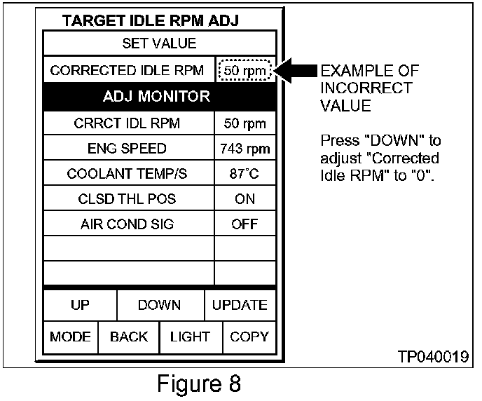 3. Check the CORRECTED IDLE RPM (see Figure 8):