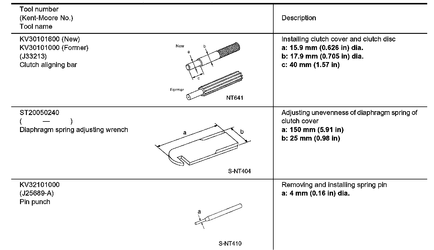 The actual shapes of Kent-Moore tools may differ from those of special service tools illustrated here.