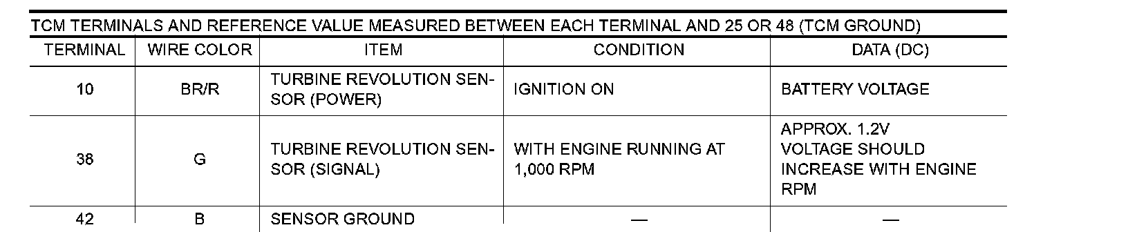 2. Check voltage between TCM terminal 38 and ground (measure in AC range).
