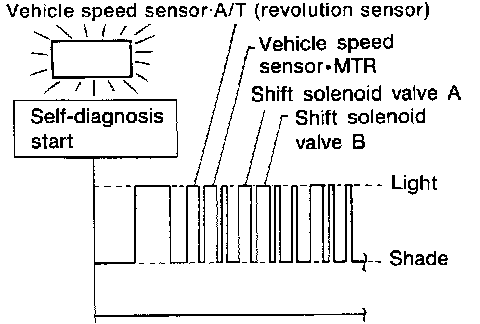 Does self-diagnosis show damage to vehicle speed sensor A/T (revolution sensor), shift solenoid valve A, B or vehicle speed sensor MTR after cruise test?