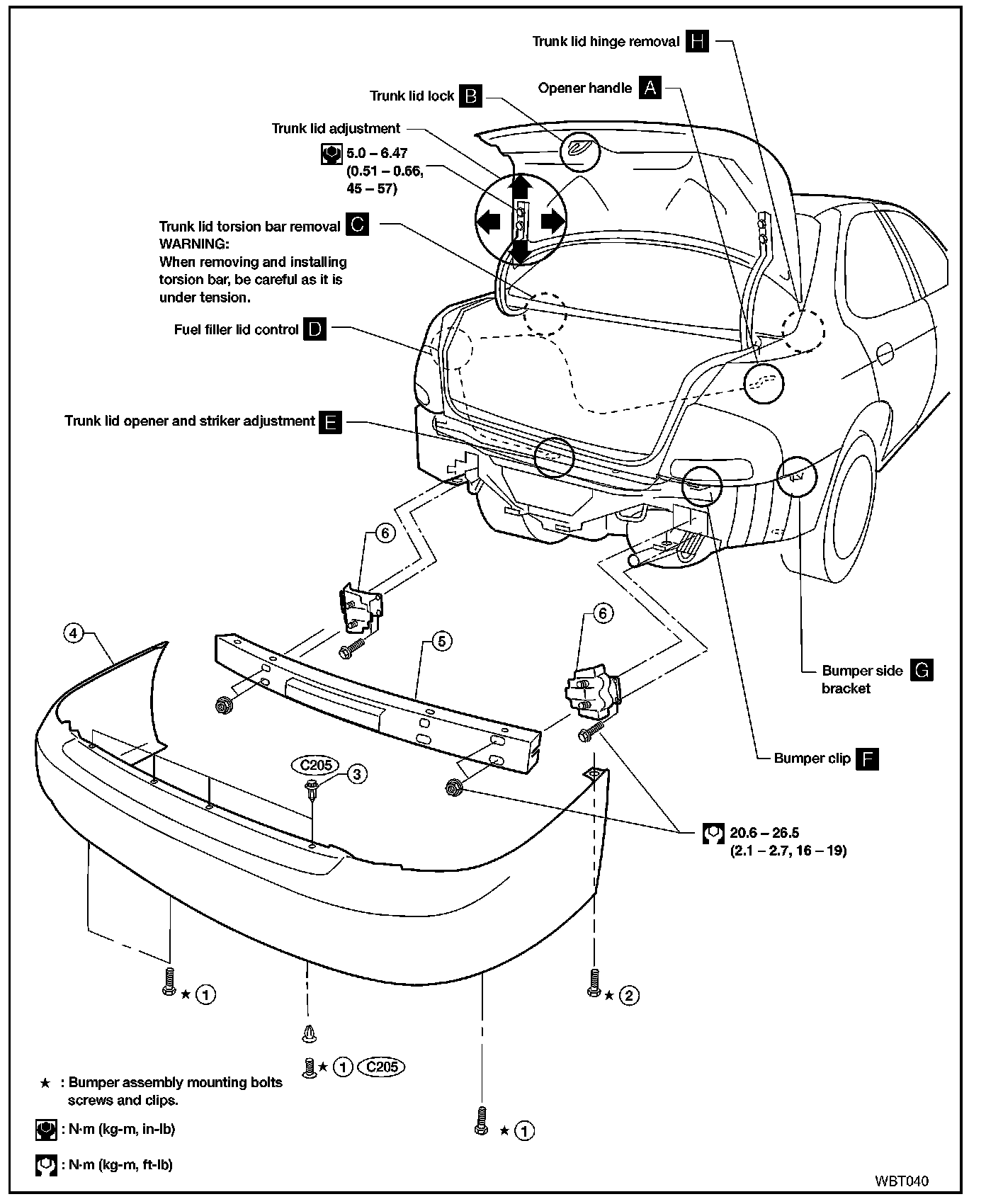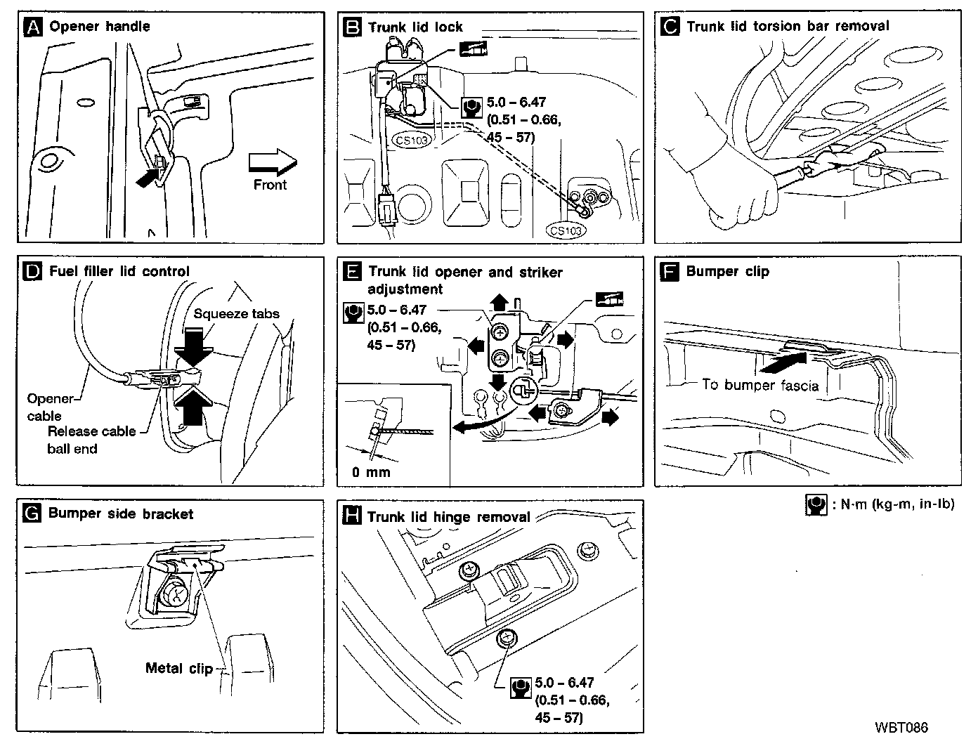 - Trunk lid adjustment: Adjust at hinge-trunk lid portion for proper trunk lid fit.