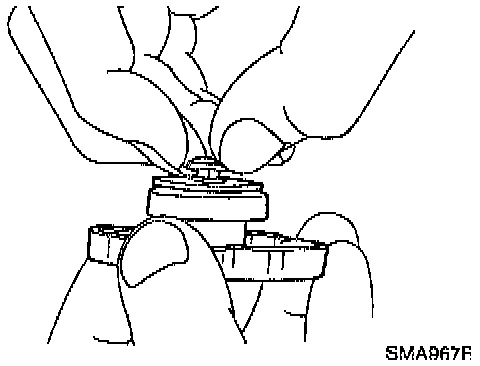 CHECKING RADIATOR CAP^ Check that there is no dirt or damage on the valve seat of the radiator cap negative-pressure valve.