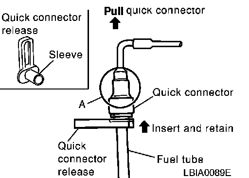 ^ Using the quick connector release tool (hereinafter called "release tool"), perform the following steps to disconnect quick connector.