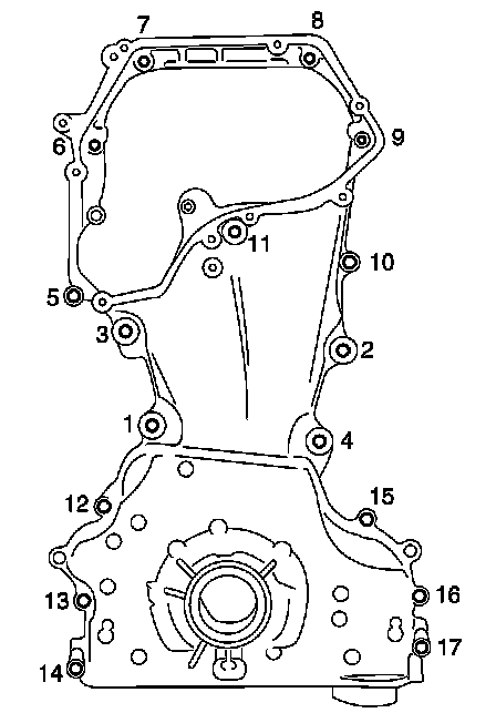 Front cover bolts: 12 - 13 Nm (1.2 - 1.4 kg-m, 9 - 10 ft. lbs.)