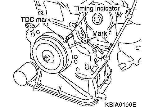 a. Rotate the crankshaft pulley clockwise and align the mating marks to the timing indicator on the front cover.