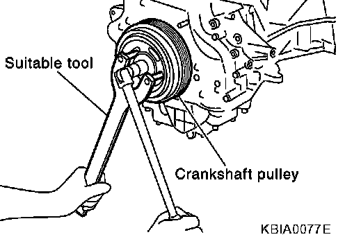 - Secure crankshaft pulley with a pulley holder to tighten the bolt.