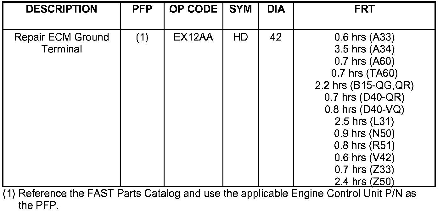 b. Take your list and go to section PG in the appropriate Service Manual. You'll be able to identify the exact location of the ECM ground terminals you'll need to check.