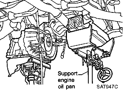12. Support engine by placing a jack under oil pan.