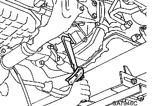 16. Remove bolts fixing A/T to engine.
