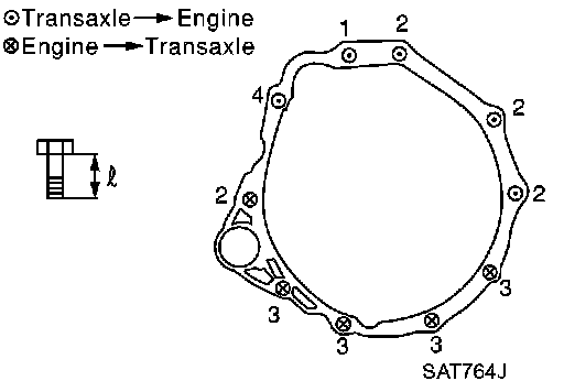 - Tighten bolts securing transaxle.