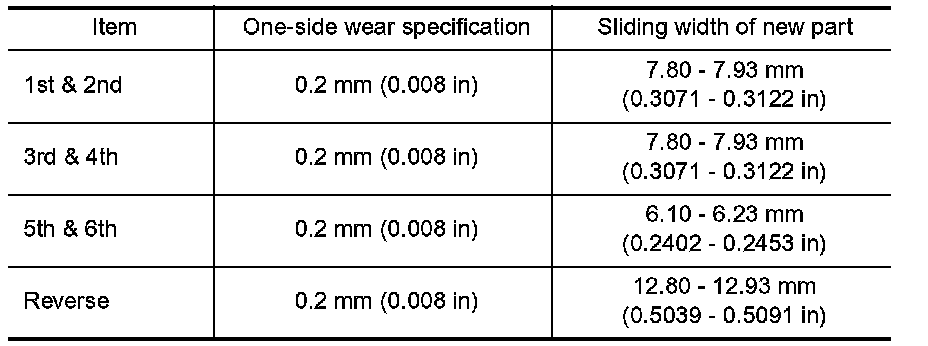 - Check if the width of shift fork hook (sliding area with coupling sleeve) is within allowable specification below.