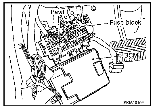 4. Raise the pawl of fuse block and remove bracket from fuse block to remove BCM.