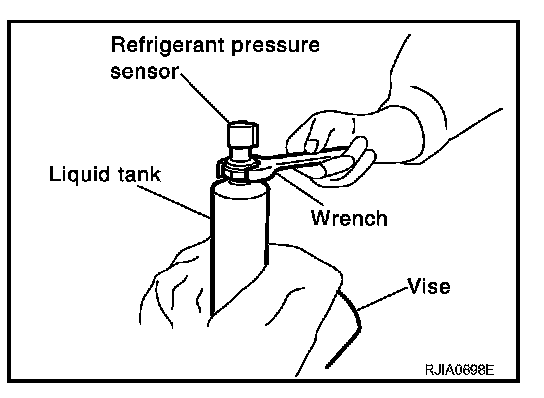 2. Using a vise secure liquid tank and remove refrigerant pressure sensor.