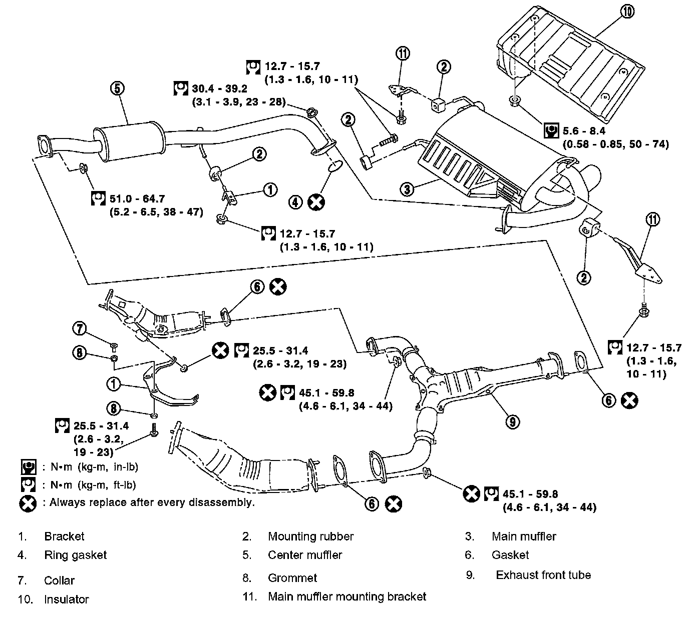 Main Muffler Mounting Bracket Bolt Torque Sequence: