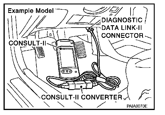 2. Connect CONSULT-II and CONSULT-II CONVERTER to the data link connector.
