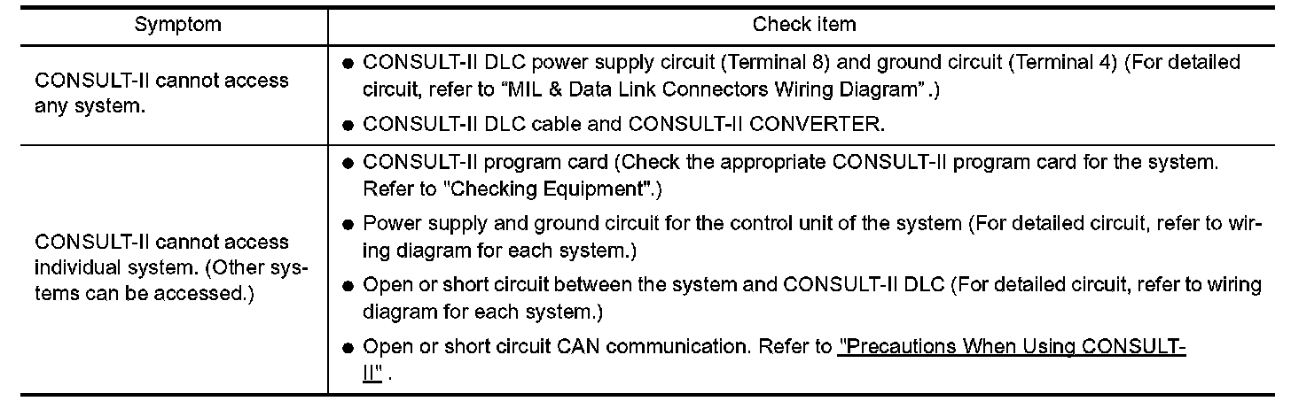 If the CONSULT-II cannot diagnose the system properly check the items.