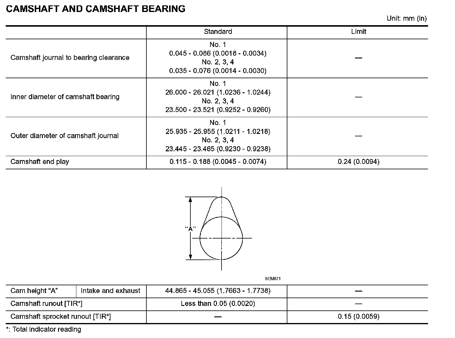 CAMSHAFT AND CAMSHAFT BEARING: