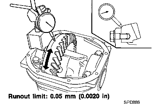 Check runout of ring gear with a dial indicator.