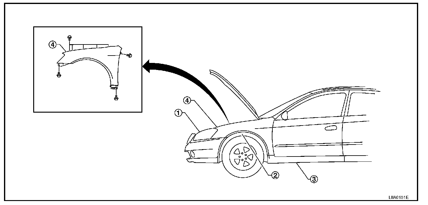 3. Remove front half of center mud guard. Refer to "Removal and Installation".