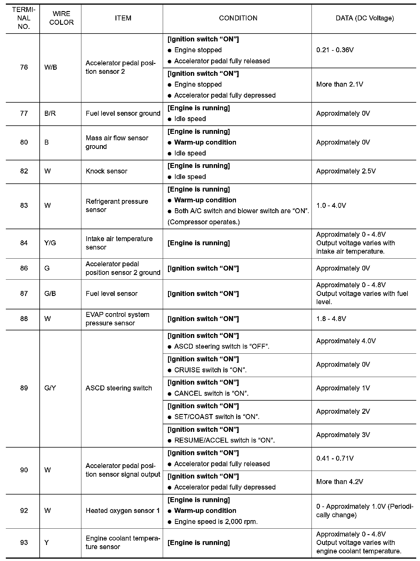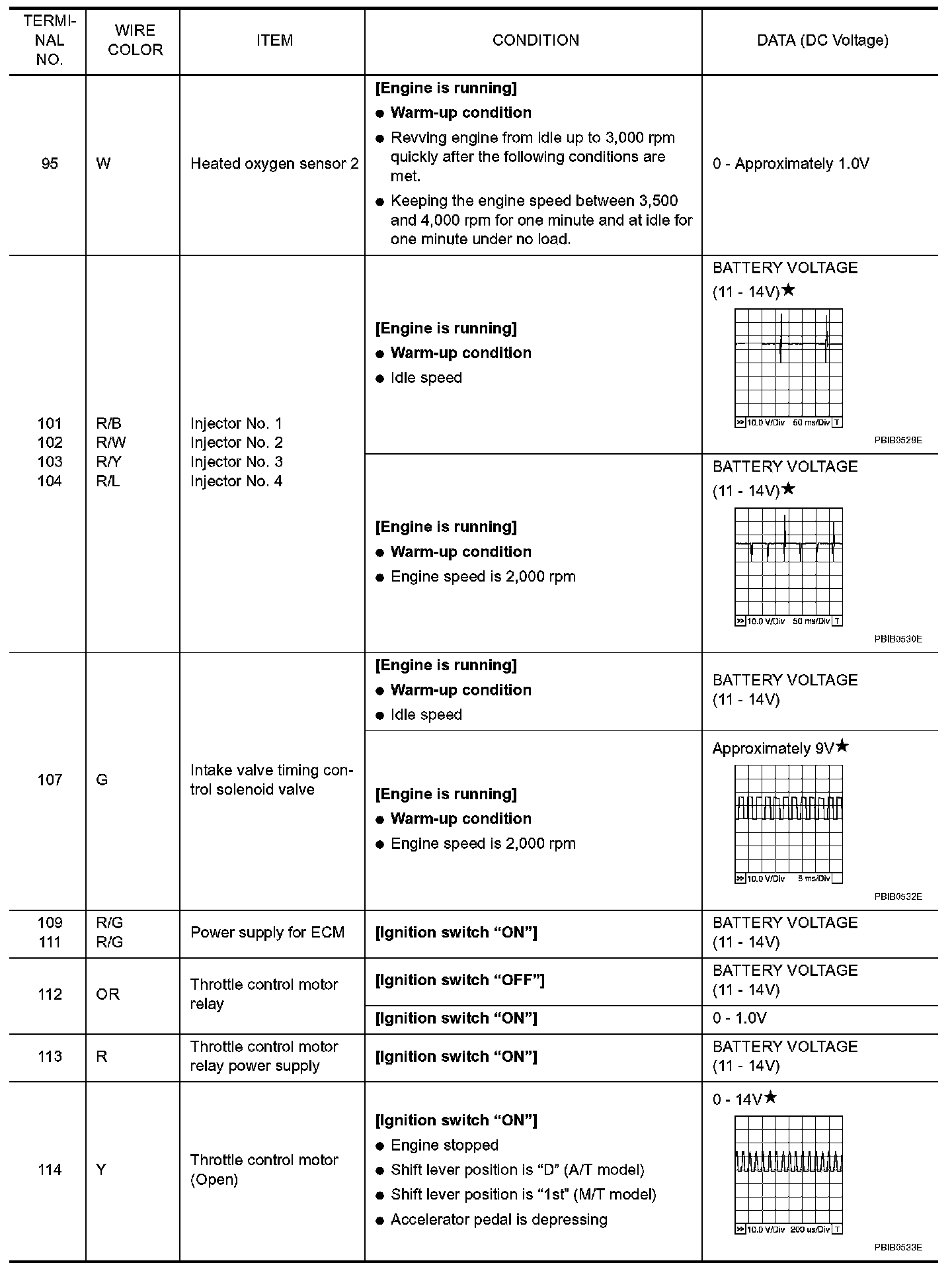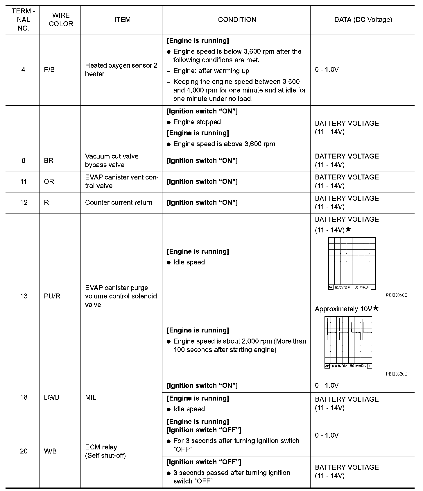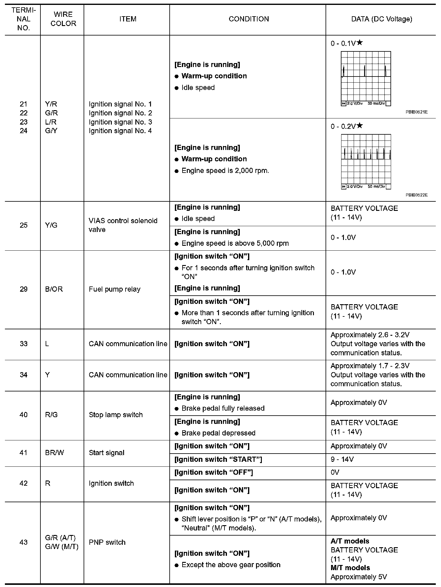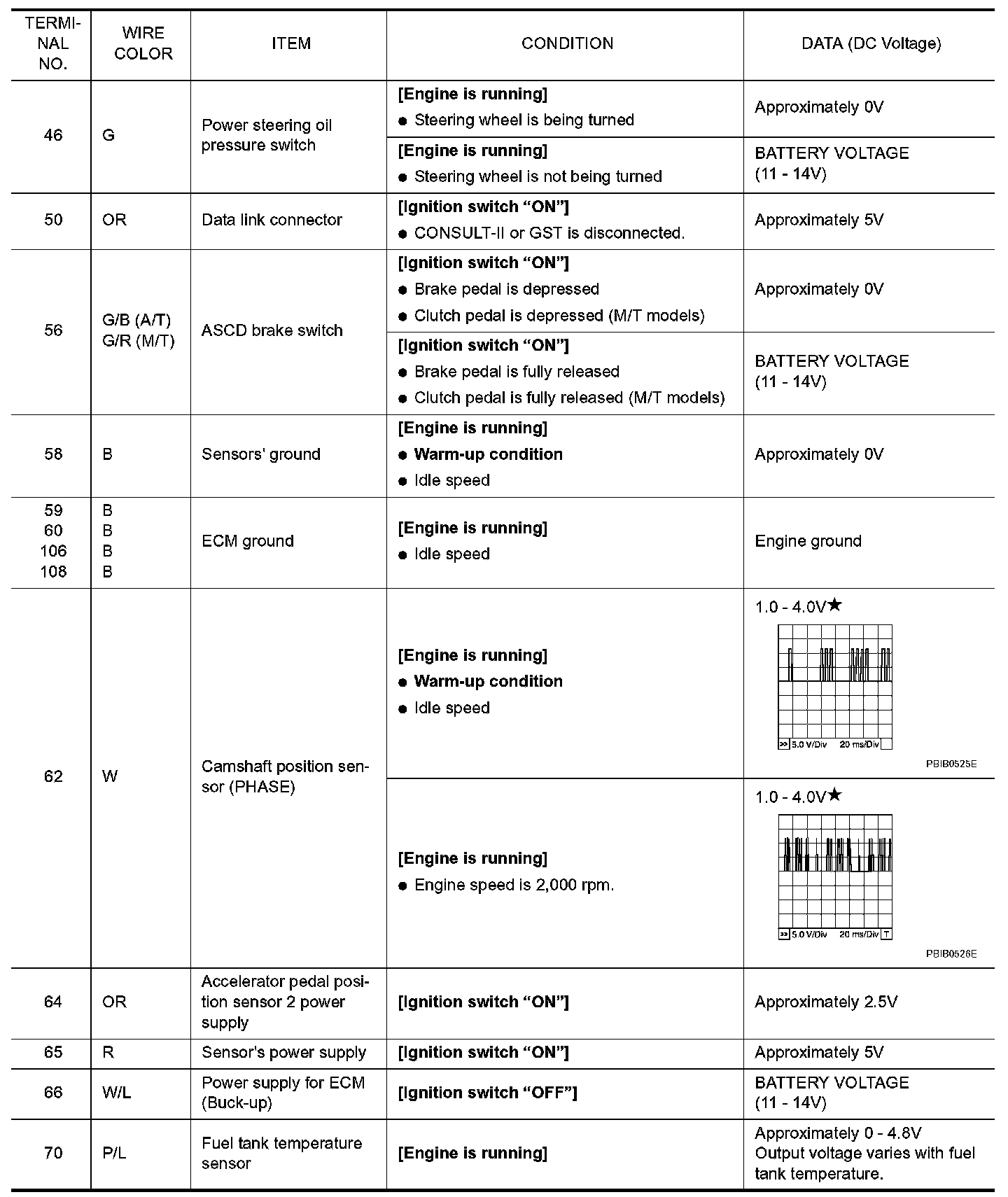 ECM Harness Connector Terminal Layout: