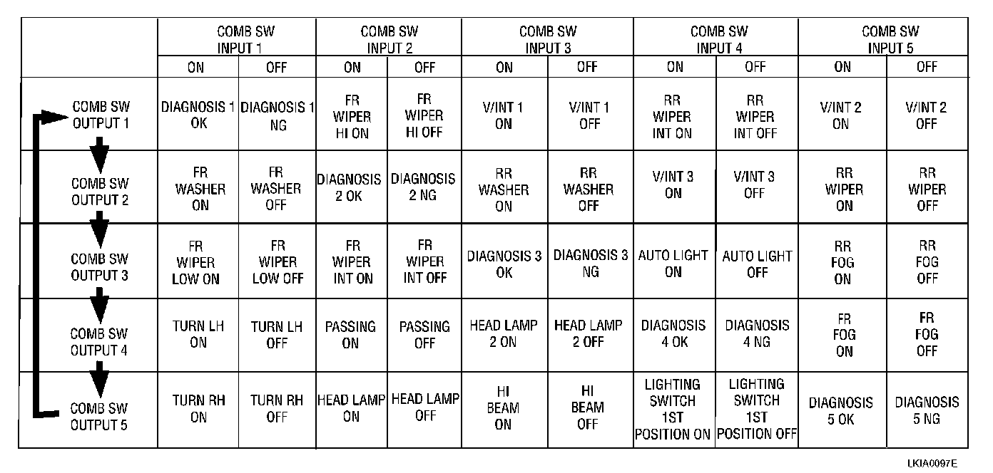- BCM reads operation status of combination switches by the combination shown in the table.