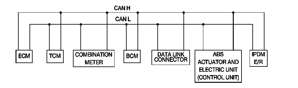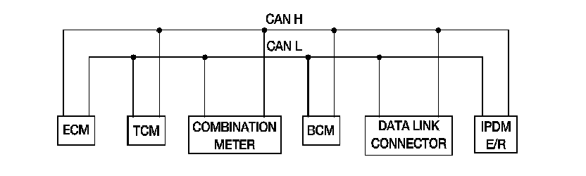 CAN (Controller Area Network) is a serial communication line for real time application. It is an on-vehicle multiplex communication line with high data communication speed and excellent error detection ability. Many electronic control units are equipped onto a vehicle, and each control unit shares information and links with other control units during operation (not independent). In CAN communication, control units are connected with 2 communication lines (CAN H line, CAN L line) allowing a high rate of information transmission with less wiring. Each control unit transmits/receives data but selectively reads required data only.