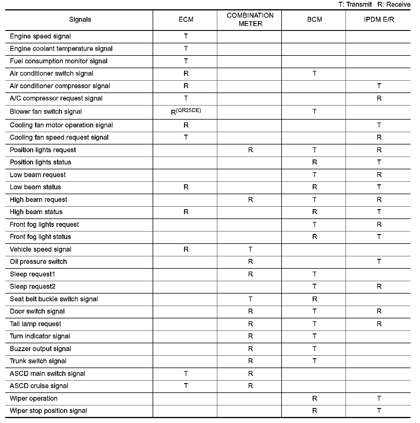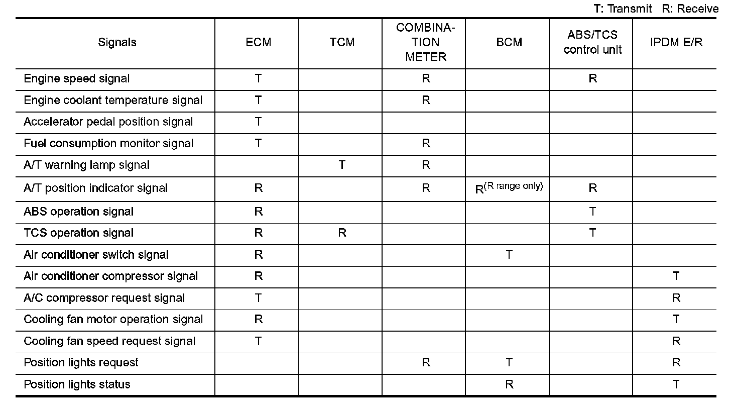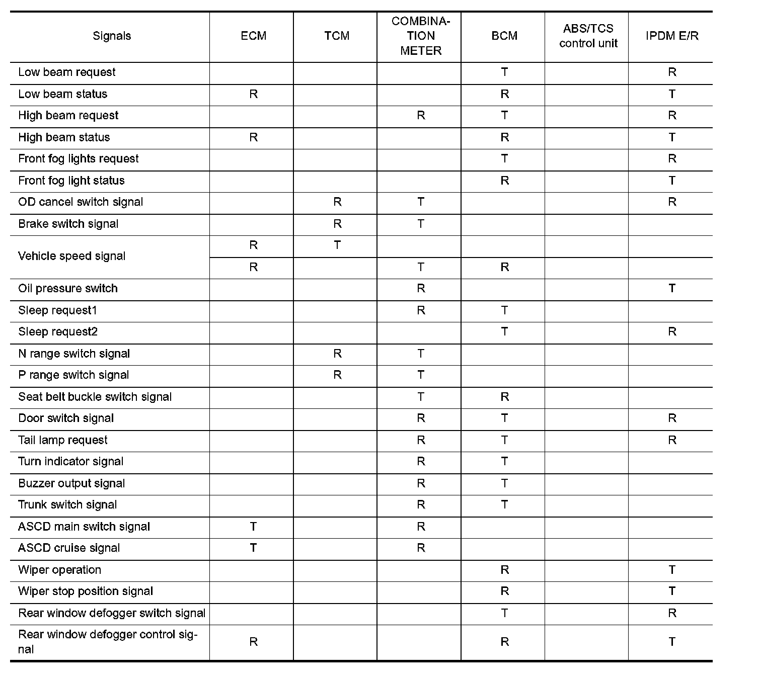- It transmits sleep request signal to IPDM E/R and combination meter.