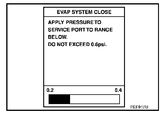 6. Apply positive pressure to the EVAP system until the pressure indicator reaches the middle of the bar graph.