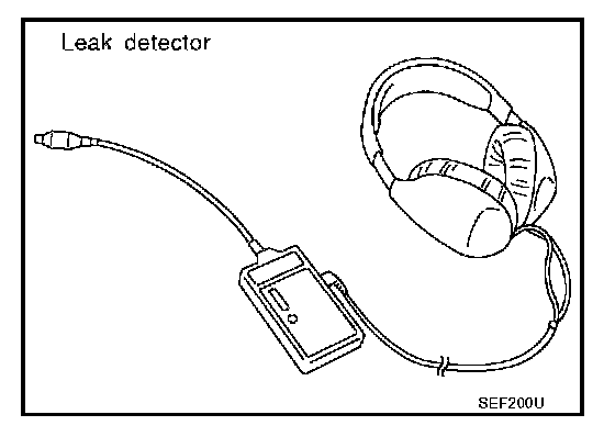 8. Locate the leak using a leak detector. Refer to "EVAPORATIVE EMISSION LINE DRAWING".