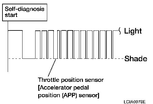 Does self-diagnosis show damage to throttle position sensor [accelerator pedal position (APP) sensor] circuit?