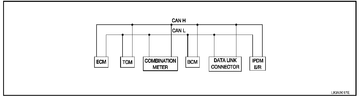 In CAN communication, control units are connected with 2 communication lines (CAN H line, CAN L line) allowing a high rate of information transmission with less wiring.