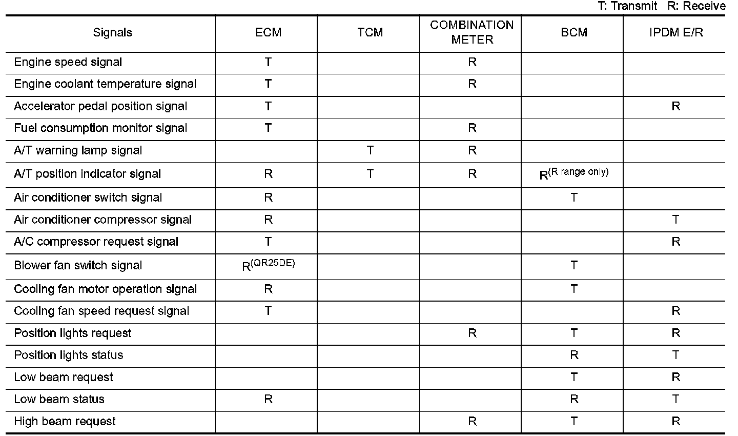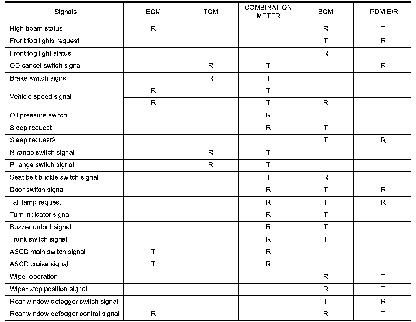 Input/Output Signal Chart [A/T Models]: