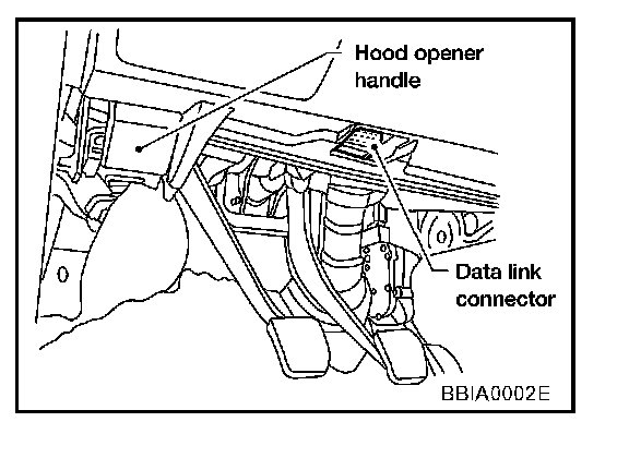 1. With the ignition switch OFF, connect CONSULT-II to the vehicle-side data link connector, then turn the ignition switch ON.