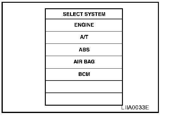 3. Touch "BCM" on the "SELECT SYSTEM" screen.
