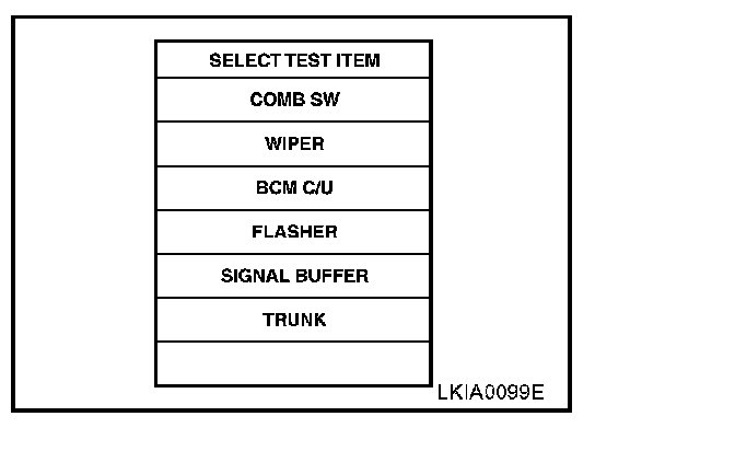 4. Select the desired part to be diagnosed on the "SELECT TEST ITEM" screen.