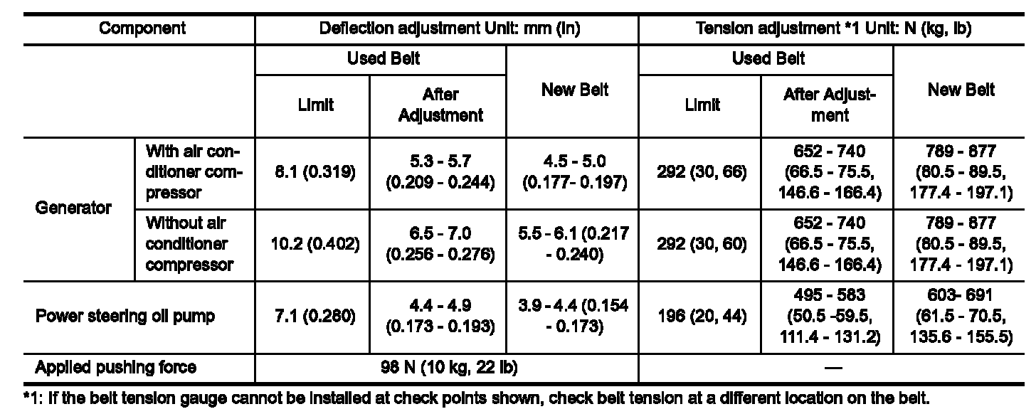 BELT DEFLECTION AND TENSION - (QG18DE):
