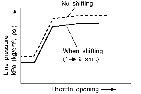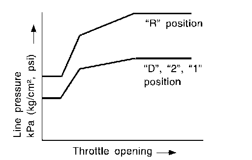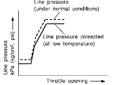 ^ The line pressure is reduced below 60°C (140°F)to prevent shifting shock due to low viscosity of automatic transmission fluid when temperature is low.