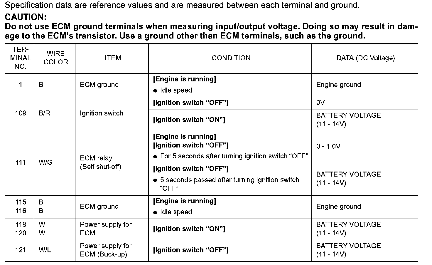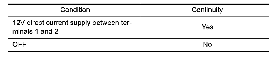 1. Apply 12 V direct current between ECM relay terminals 1 and 2.