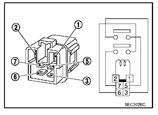 2. Check continuity between ECM relay terminals 3 and 5, 6 and 7.