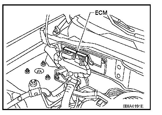 1. ECM is located in the right side of the cowl top (behind the strut tower).