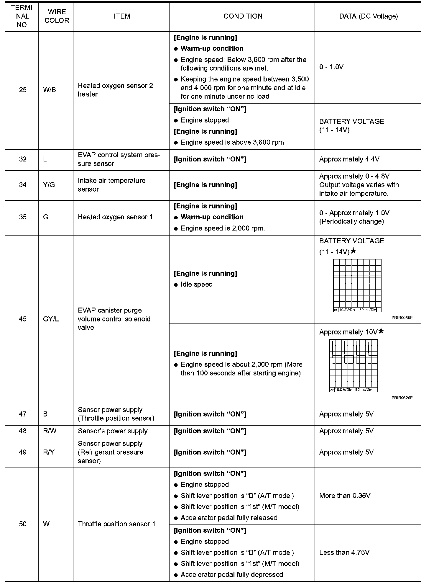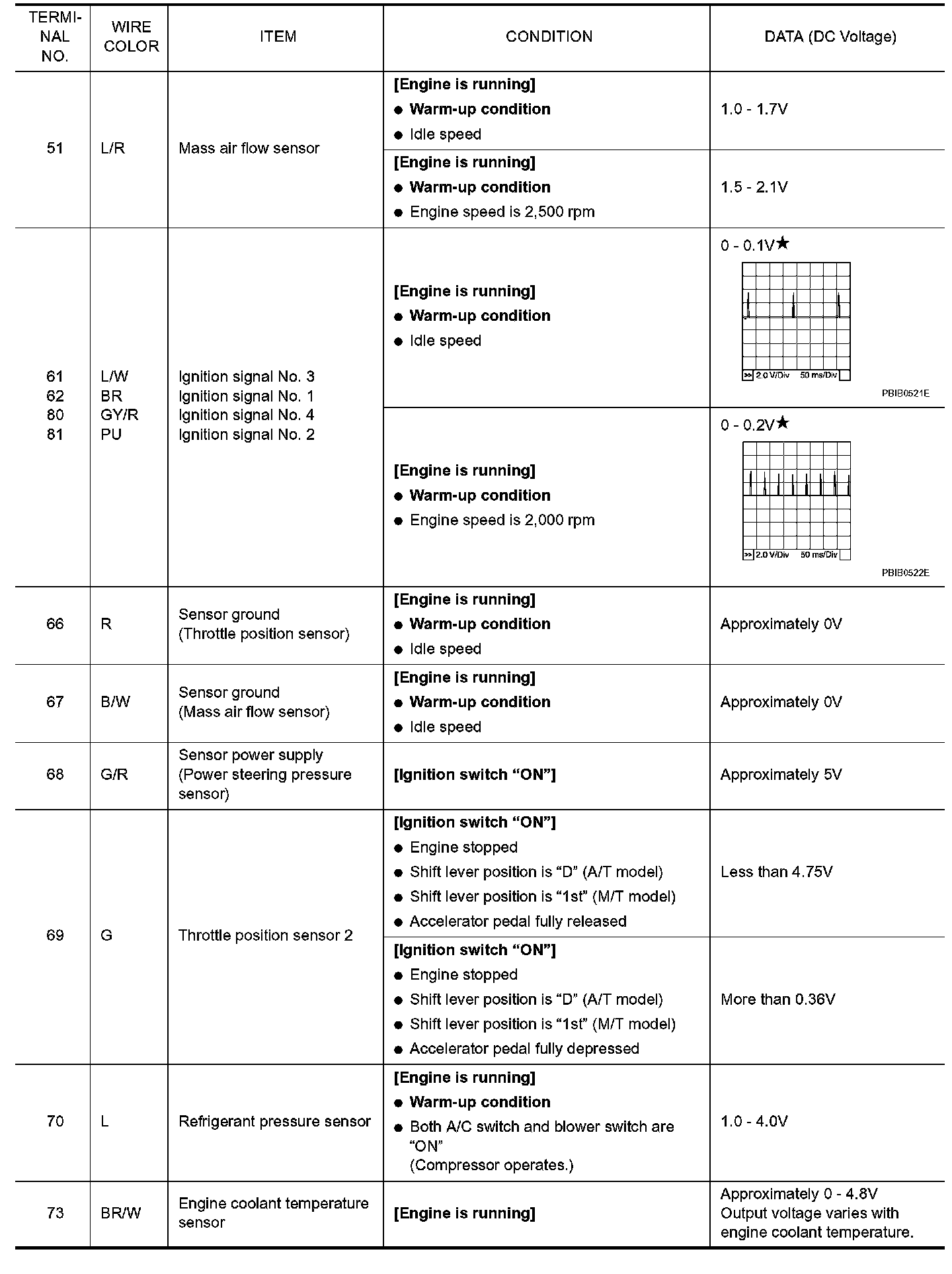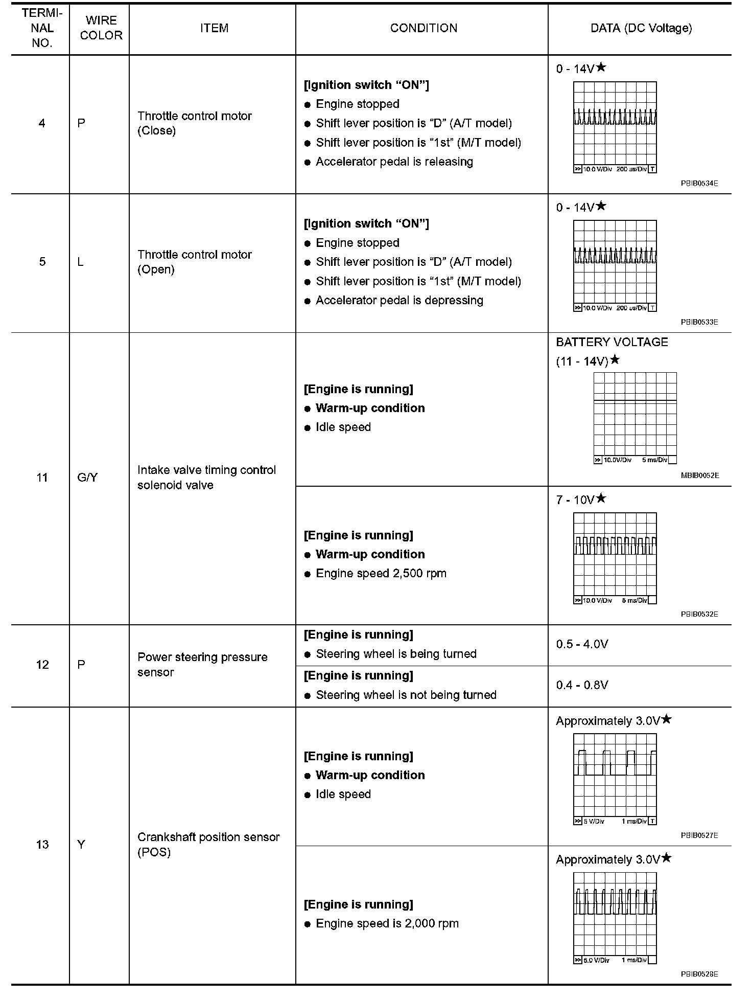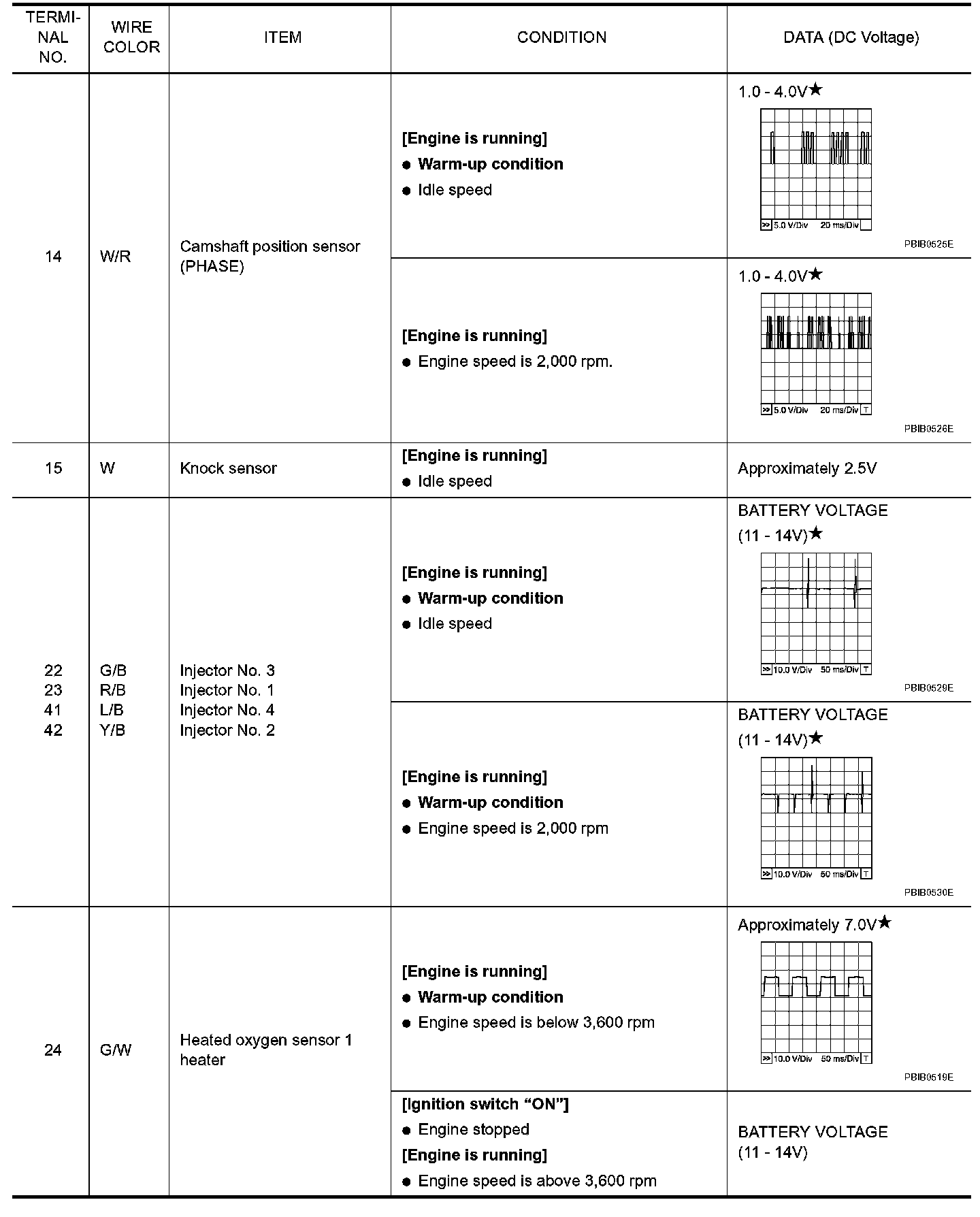Pinout Values and Diagnostic Parameters