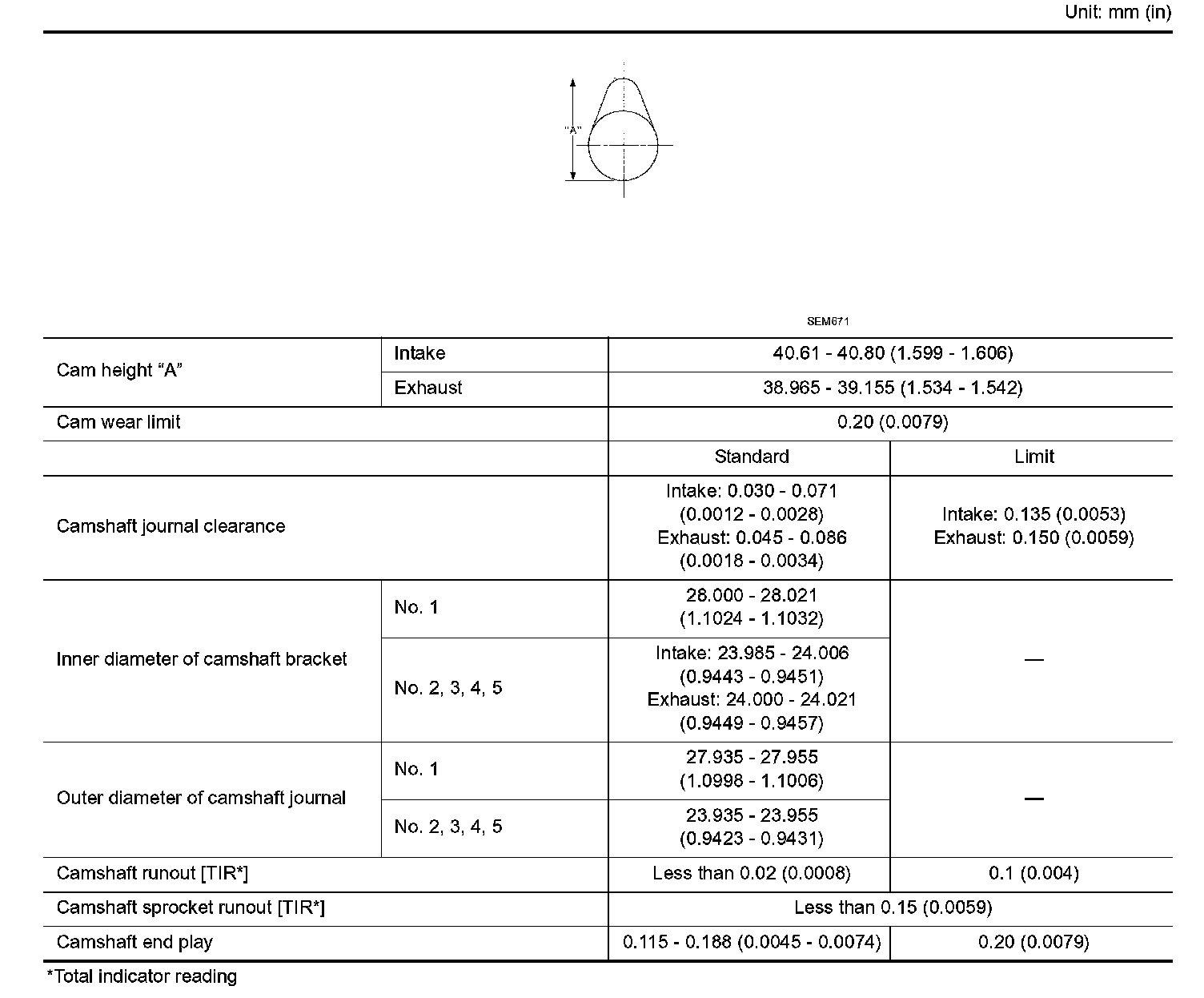 Camshaft and Camshaft Bearing - 1.8L (QG18DE):