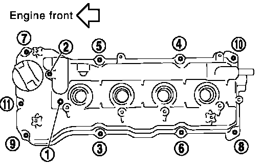 Tighten the rocker cover bolts to specified torque in two steps, in the numerical order as shown.