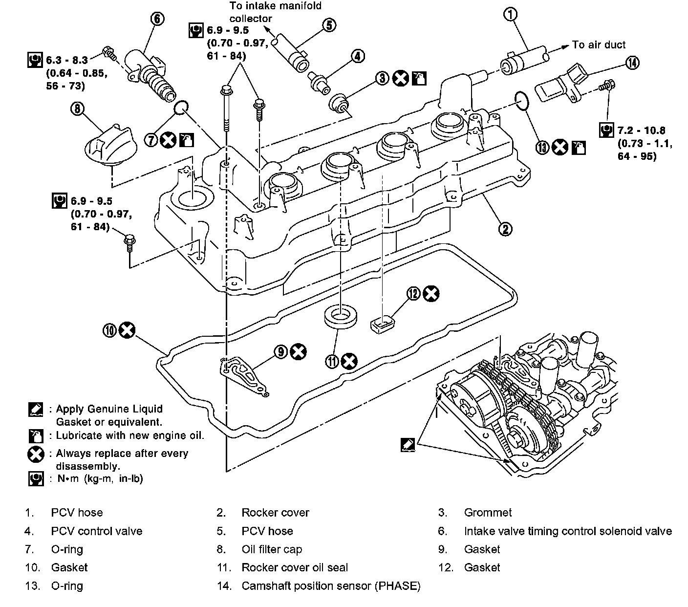 Crankshaft position sensor bolt: ........................7.2 - 10.8 Nm (0.73 - 1.10 kg-m, 63.4 - 95.5 inch lbs.)