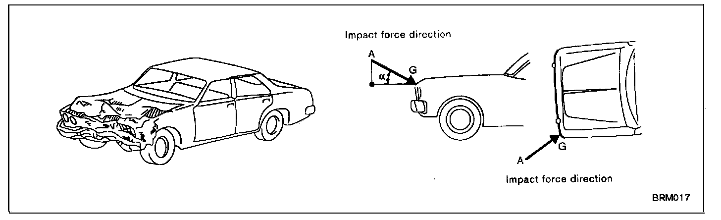 The body panel may be damaged indirectly by inertia. Portion A in the figure is the direct damage, and portion B shows a type of indirect damage. Therefore, it is necessary to closely check for both types of damage.