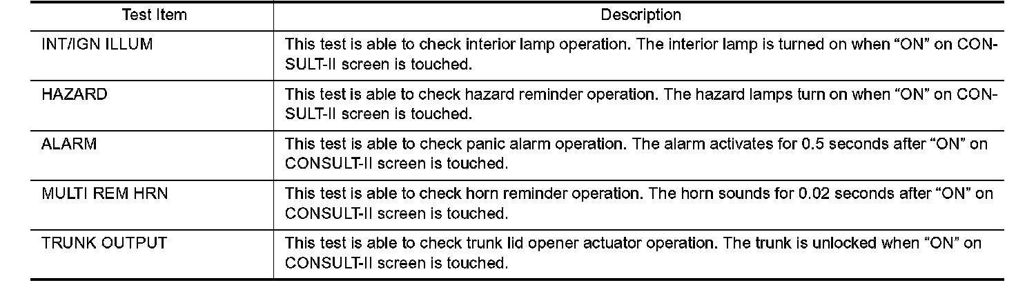 Remote Keyless / Consult-II Application Items "MULTI REMOTE ENT" - Active Test: