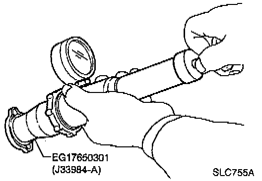 When connecting the radiator cap to the tester, apply water or coolant to the cap seal surface.