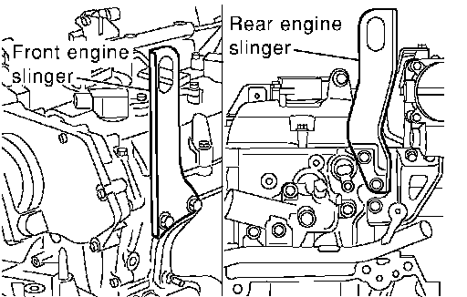 For engines not equipped with slingers, attach proper slingers and bolts.