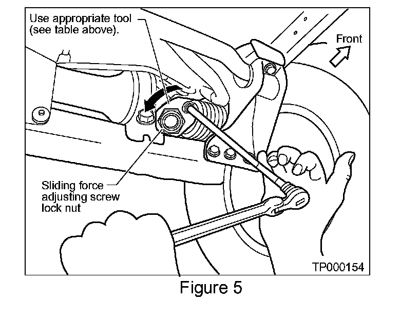 2. Tighten the sliding force adjusting screw slightly then re-tighten the lock nut while holding the adjusting screw (see Figure 6).