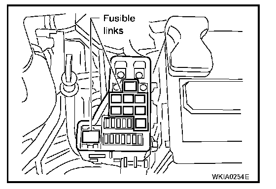 CAUTION: If fusible link should melt, it is possible that critical circuit (power supply or large current carrying circuit) is shorted. In such a case, carefully check and eliminate cause of incident. Never wrap outside of fusible link with vinyl tape. Important: Never let fusible link touch any other wiring harness, vinyl or rubber parts.